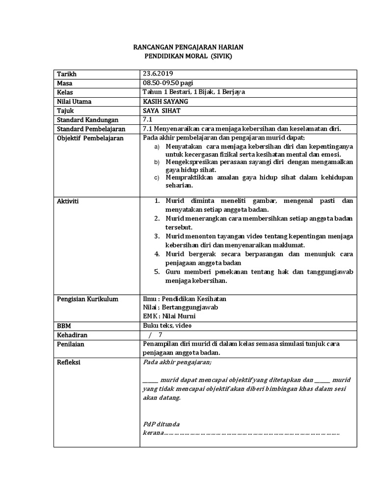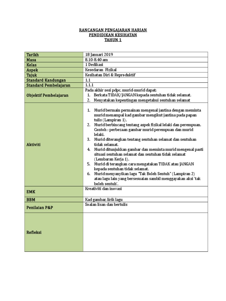 10 Kelebihan Penggunaan Buku Teks Digital Pendidikan Kesenian Tahun 2 SK KSSR. TRANSISI TAHUN 1. RPH Pendidikan Kesihatan Tahun 1 adalah Rancangan Pengajaran Harian yang perlu disediakan lebih awal oleh guru sebelum menjalankan sesi pegajaran dan pembelajaranRancangan Pengajaran Harian ini dibina sebagai panduan para guru untuk mengajar dengan lebih sistematik dan efektif serta mampu untuk mencapai apa yang.